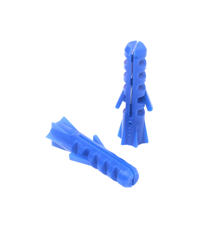 Chevilles en plastique adaptées à la plupart des matériaux pour ancrage sur murs pleins (Béton) ou creux (Briques). Ancrage solide par crants d'arrêt.